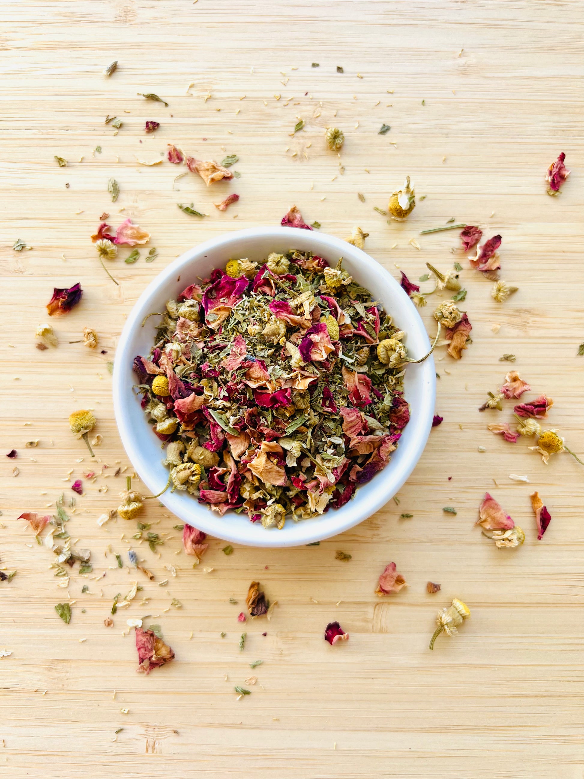 Ingredients: Organic Egyptian chamomile, USA spearmint, Indian rose petals and French lavender