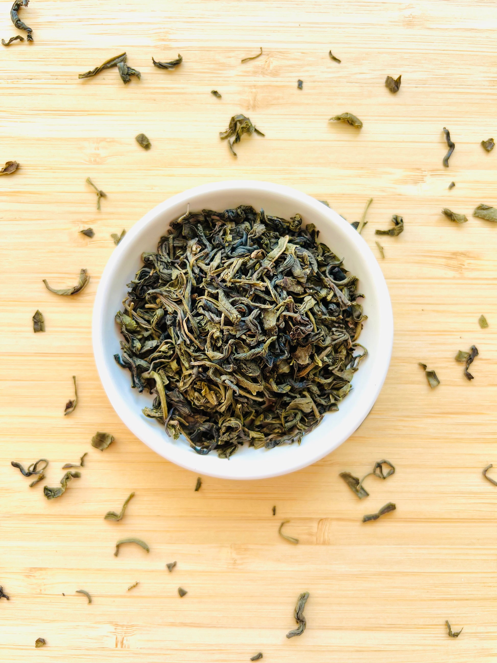 Each summer when the jasmine flowers are blooming in Southeastern China’s Fujian province, a midnight ritual takes place. Premium spring-harvested green tea is layered with fresh jasmine blossoms so that the flowers can impart their aroma onto the tea. This takes place in the shade of the night so that the precious jasmine aromatic oil is not diluted by the summer sun. Up to 10 lots of jasmine flowers are used to scent one lot of tea for an intense, yet natural, floral aroma.